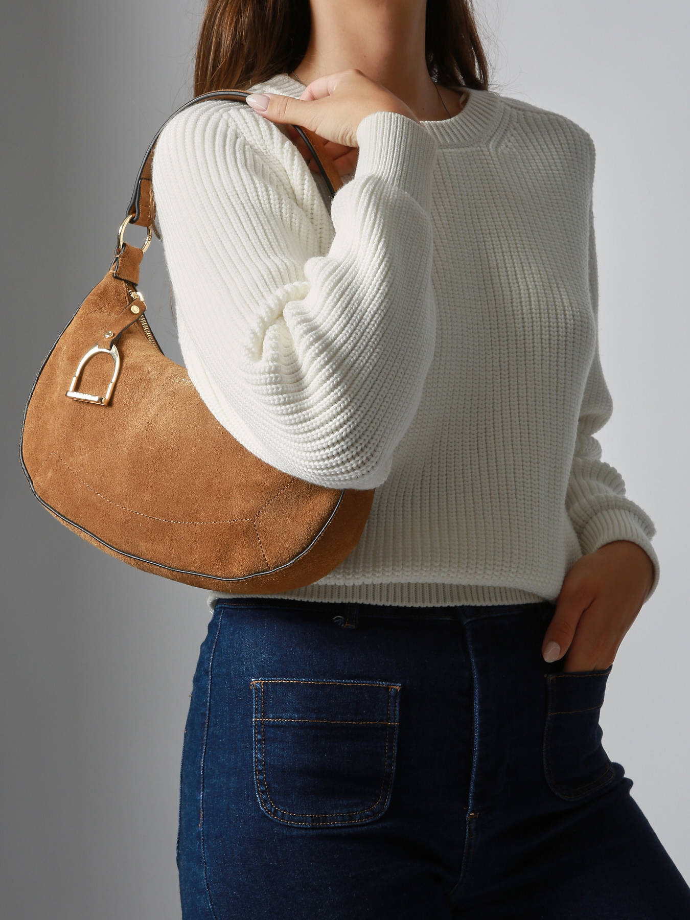 Le sac porté épaule ETRIER de la ligne ALTESSE SUEDE est conçu en cuir velours au toucher doux et chaleureux. Ce modèle adopte une forme demi-lune, à la fois tendance et élégante. Il peut se porter à l’épaule ou en bandoulière grâce à sa bandoulière amovible et ajustable. Le symbole emblématique de l’étrier, ici doré, orne le pendentif de la fermeture, ajoutant une touche raffinée à l’ensemble. Le dos du sac est réalisé en cuir grainé, pour une finition contrastée et une meilleure tenue dans le temps. À l’intérieur, le sac dispose de deux poches plaquées et d’une poche zippée, pour une organisation optimale. La ligne ALTESSE SUEDE réinvente l’icône de la Maison en lui insufflant l’esprit « Highlander Cowboy » : un subtil mélange d’élégance intemporelle et d’audace contemporaine.